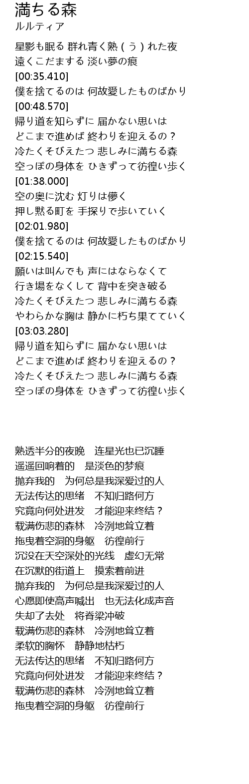 | [02:39.340] | 载满伤悲的森林 冷洌地耸立着 |