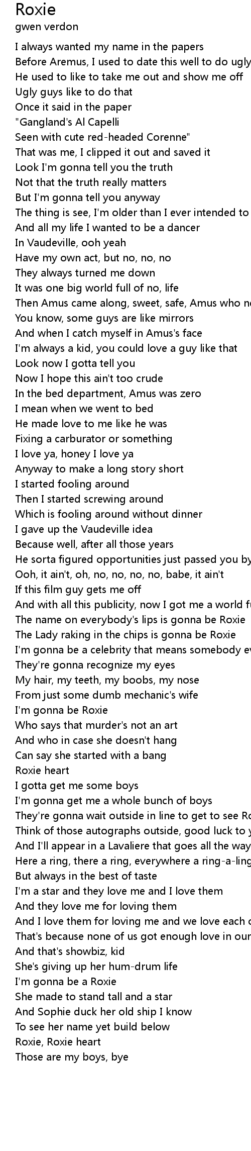 The name on everybody's lips is gonna be Roxie |