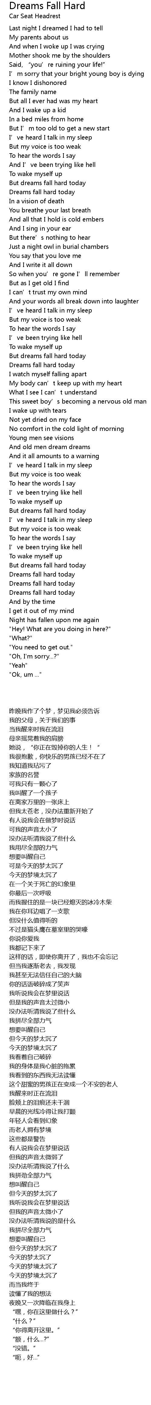 | 歌曲 | Dreams Fall Hard |