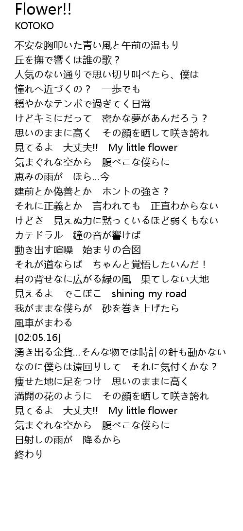 | [02:52.31] | 見てるよ 大丈夫!! My little flower |