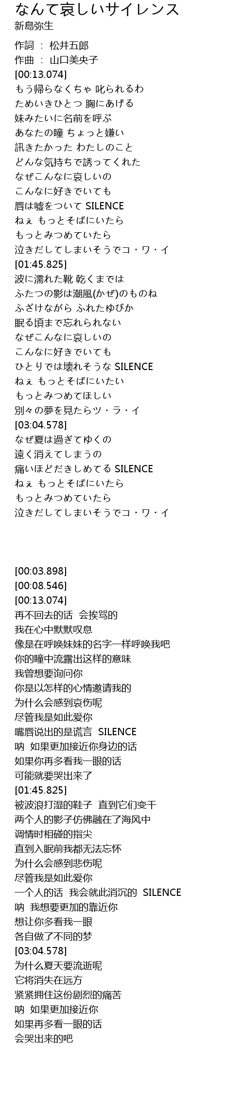 | [02:38.225] | ひとりでは壊れそうな SILENCE |