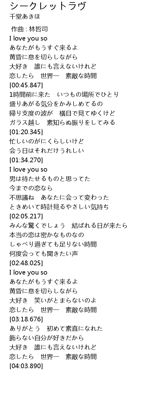 | [03:48.769] | 大好き 誰にも言えないけれど |