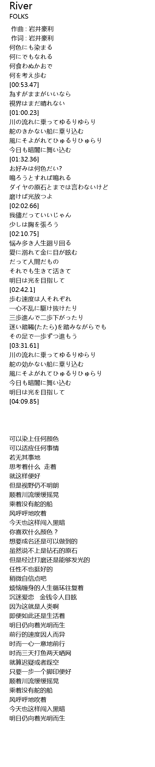 | [03:33.57] | 川の流れに乗ってゆるりゆらり |