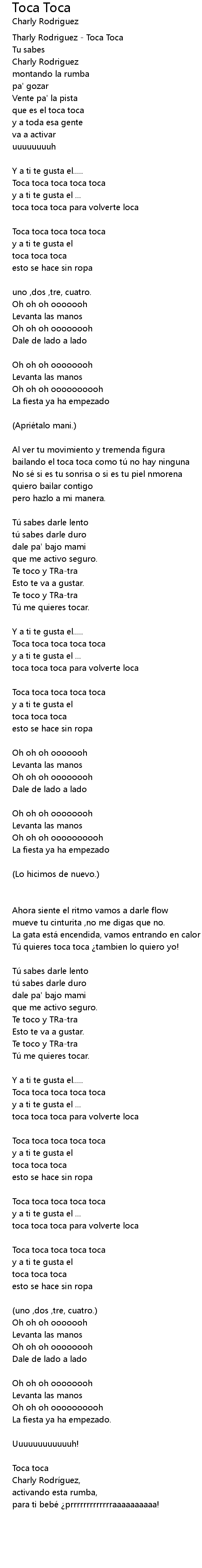 | Tú quieres toca toca ¿tambien lo quiero yo! | |