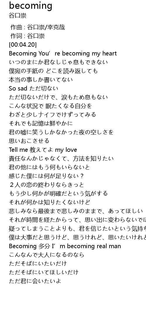 | [03:43.58] | Becoming 多分 I’m becoming real man |