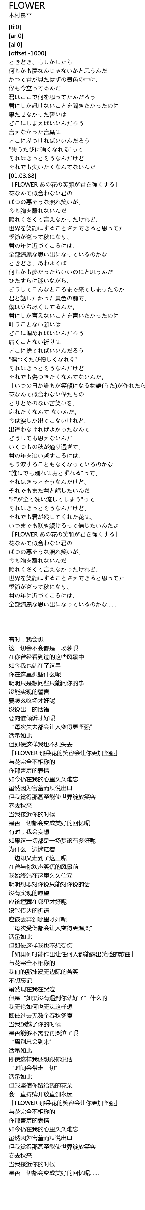 | [01:07.66] | FLOWER hua xiao yan jun qiang |