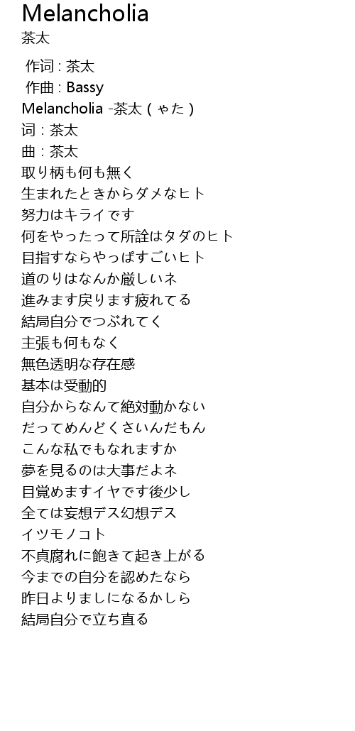 | [00:00.00] | Melancholia -茶太(ゃた) |