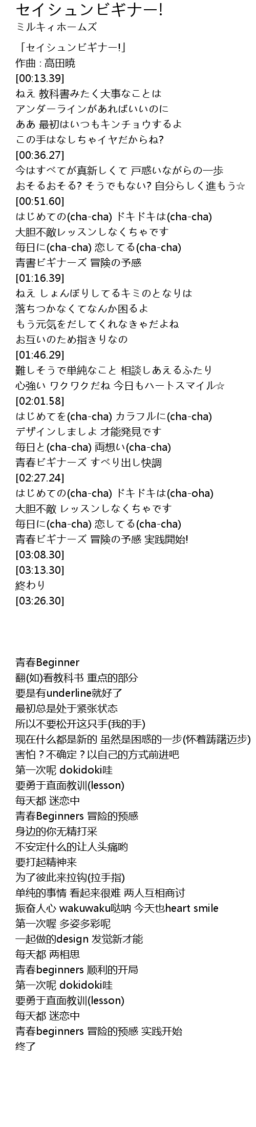 | [02:57.16] | 青春beginners 冒险的预感 实践开始 |