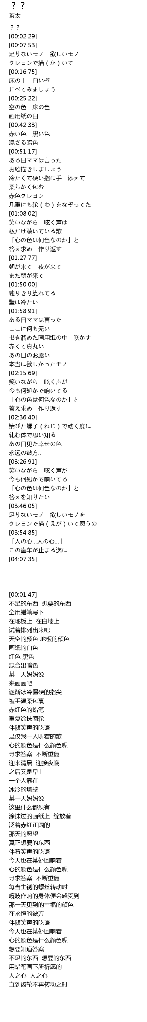 | [01:02.14] | 赤色クレヨン |