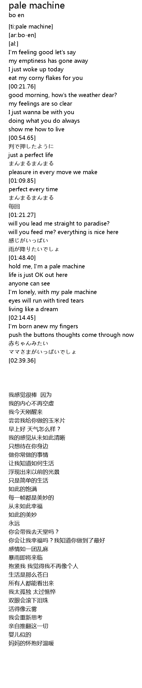 | [01:53.48] | hold me, I' m a pale machine |