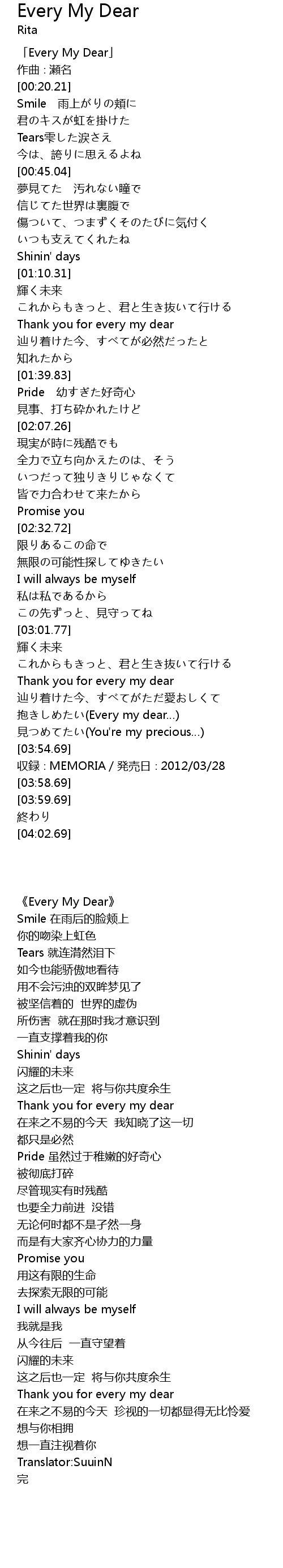 | [03:41.76] | 抱きしめたい(Every my dear…) |