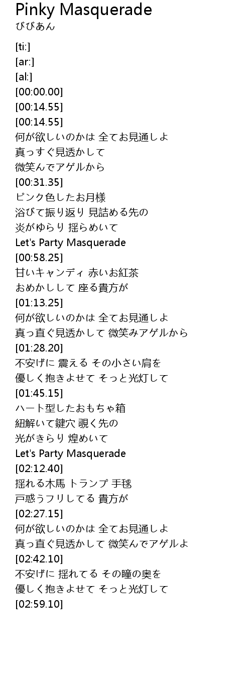 | [00:58.75] | 甘いキャンディ 赤いお紅茶 |