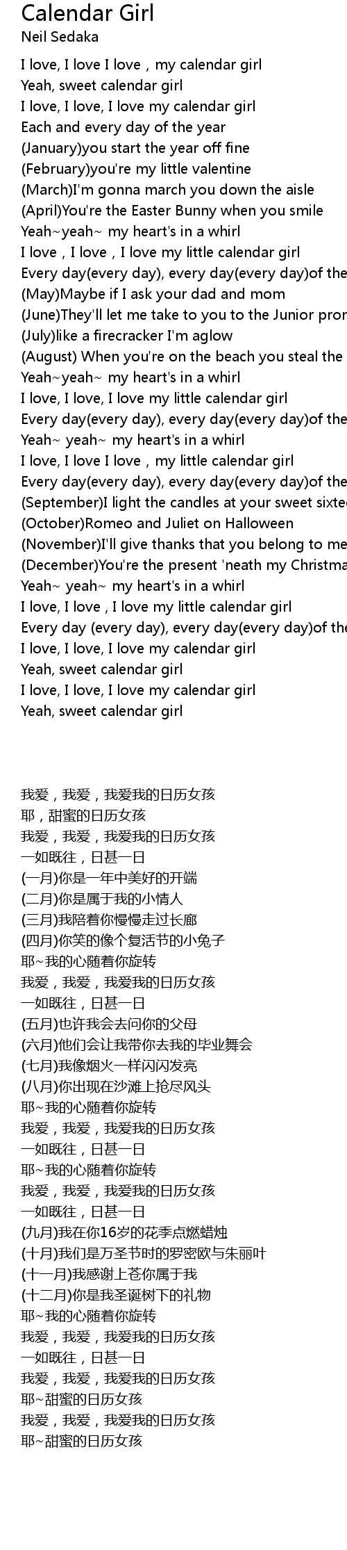 | [02:09.49] | I love, I love , I love my little calendar girl |