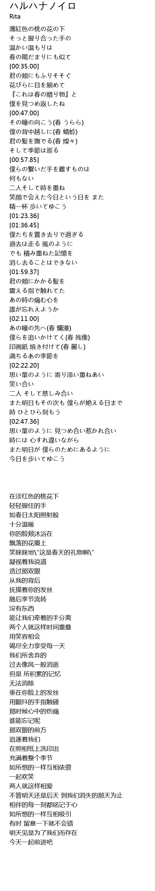 | [00:38.27] | 花びらに目を細めて |