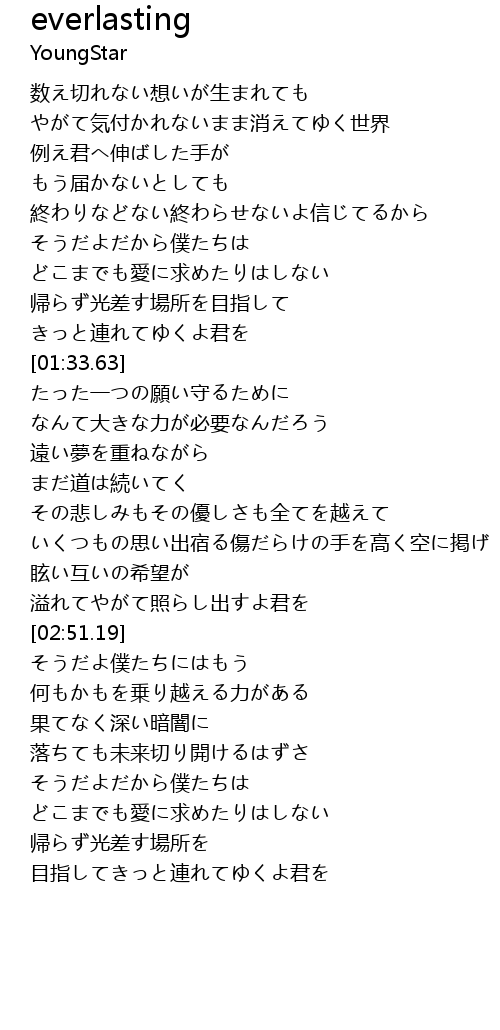 | [00:52.88] | 終わりなどない終わらせないよ信じてるから |