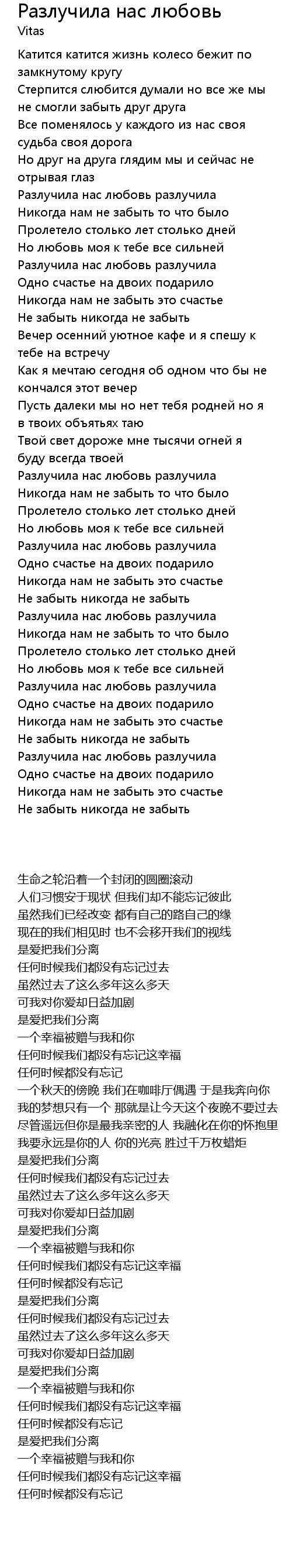 | [02:49.92] | Разлучила нас любовь разлучила |