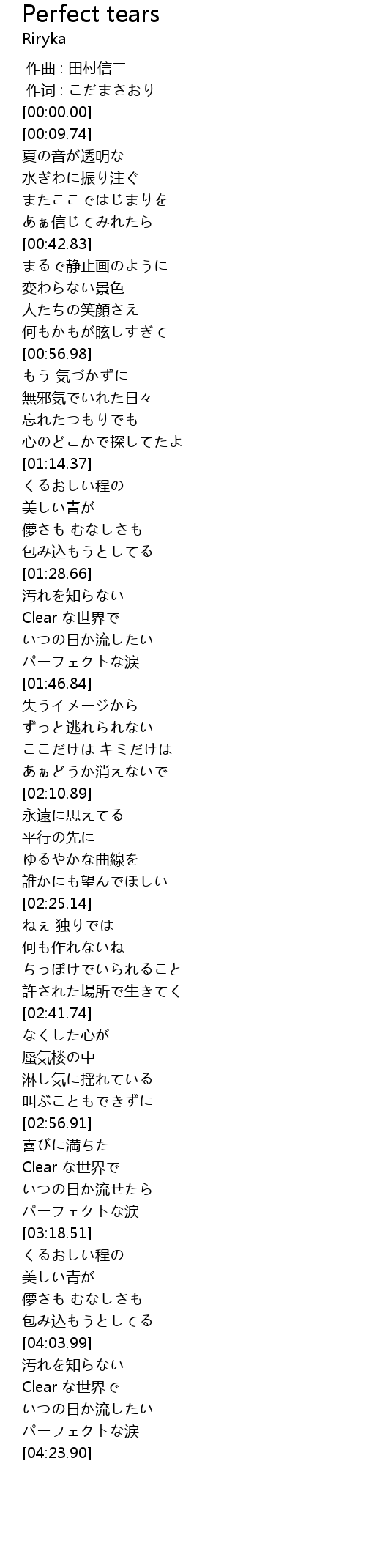 | 专辑 | PCゲーム“Clear -クリア-”イメージソング “Perfect tears” |