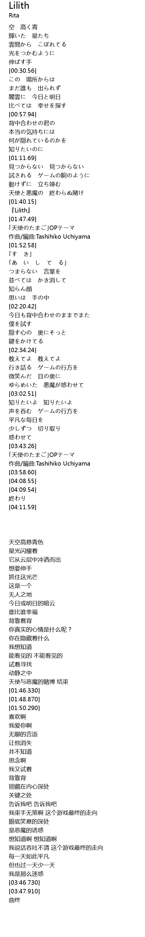 | [01:46.33] | 『Lilith』 |