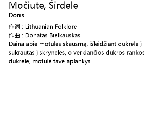 | Daina apie motul s skausm, i leid iant dukrel marteles. Kraitis sukrautas skryneles, o verkian ios dukros rankose vysta rū ta... Neverk, dukrele, motul tave aplankys. |