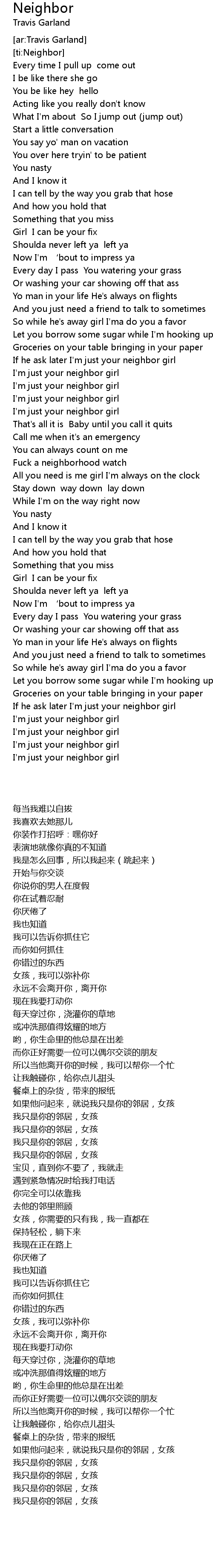 | [03:01.96] | 我只是你的邻居,女孩 |