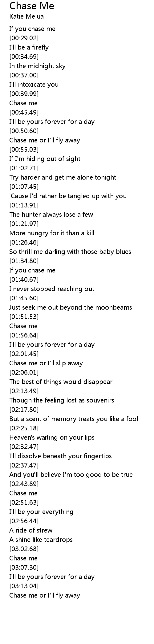 Chase me or I'll slip away |
