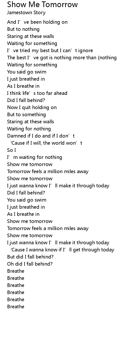 | Tomorrow feels a million miles away | |