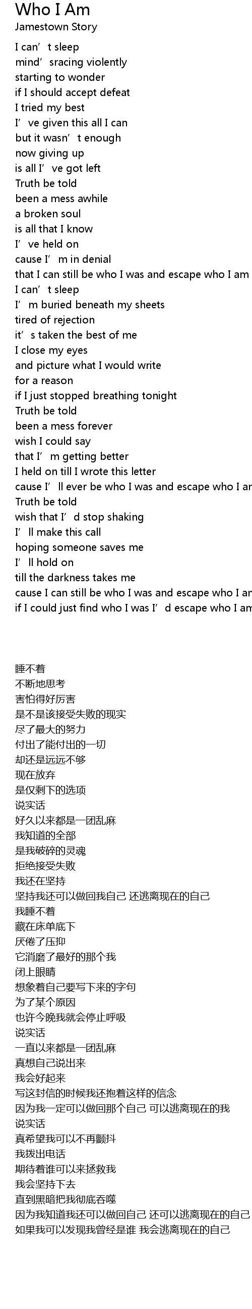 | [02:53.24] | cause I' ll ever be who I was and escape who I am |