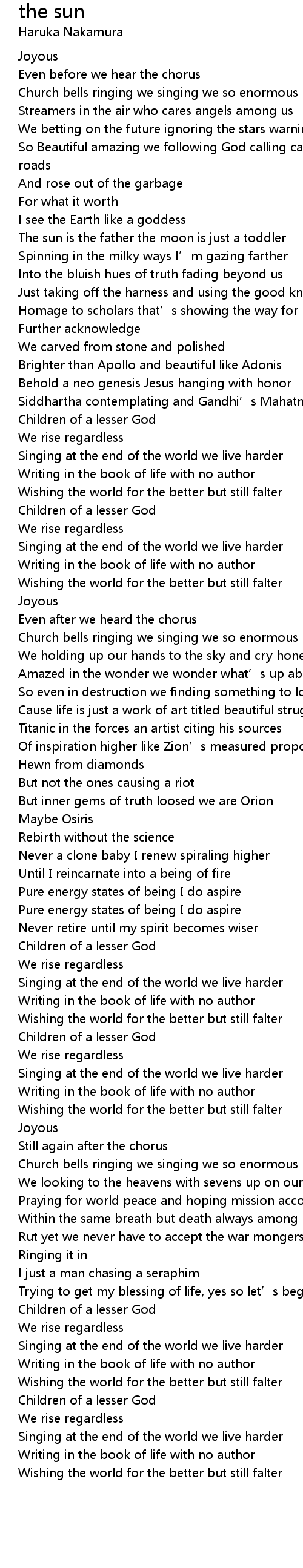 | [00:49.43] | The sun is the father the moon is just a toddler |