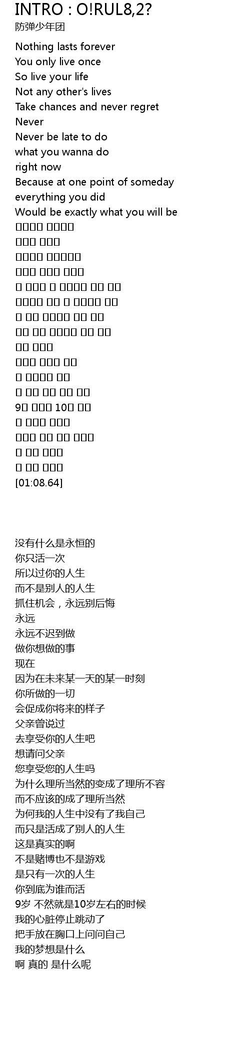 | [00:04.71] | 你只活一次 |