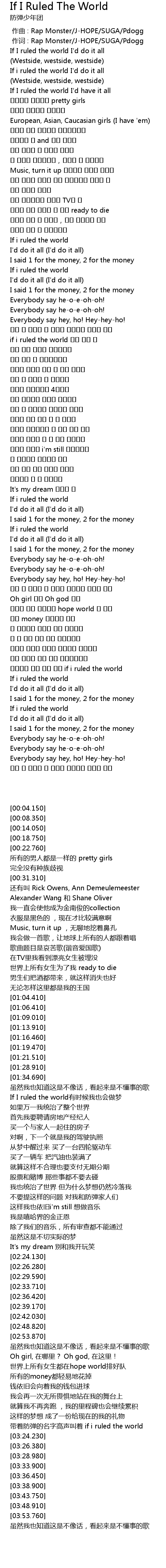 | [03:19.780] | 带着防弹的名字高声叫着 if i ruled the world |