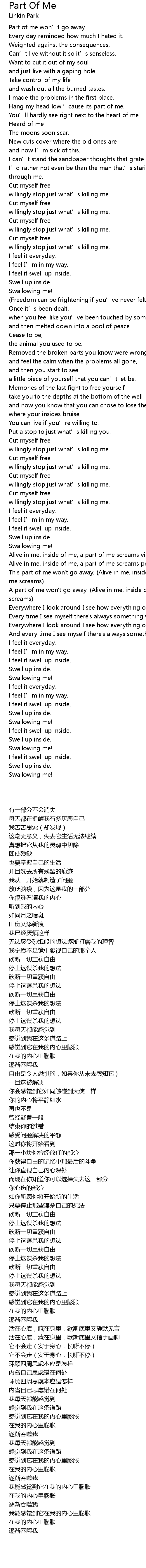 | [02:19.04] | A part of me won't go away. (Alive in me, inside of me, a part of me screams) |