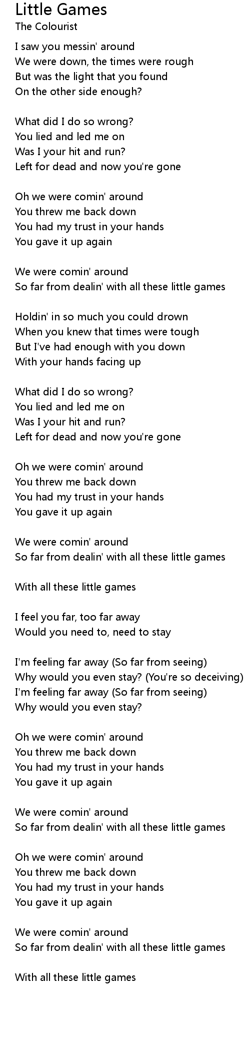 So far from dealin' with all these little games |