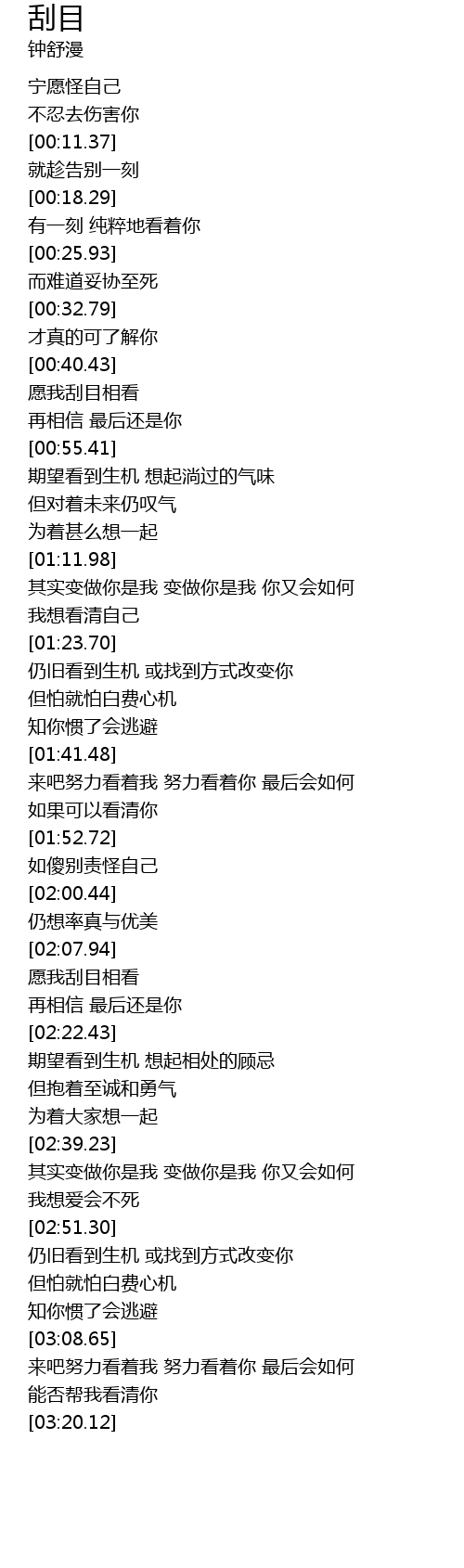 | [02:11.20] | 愿我刮目相看 |