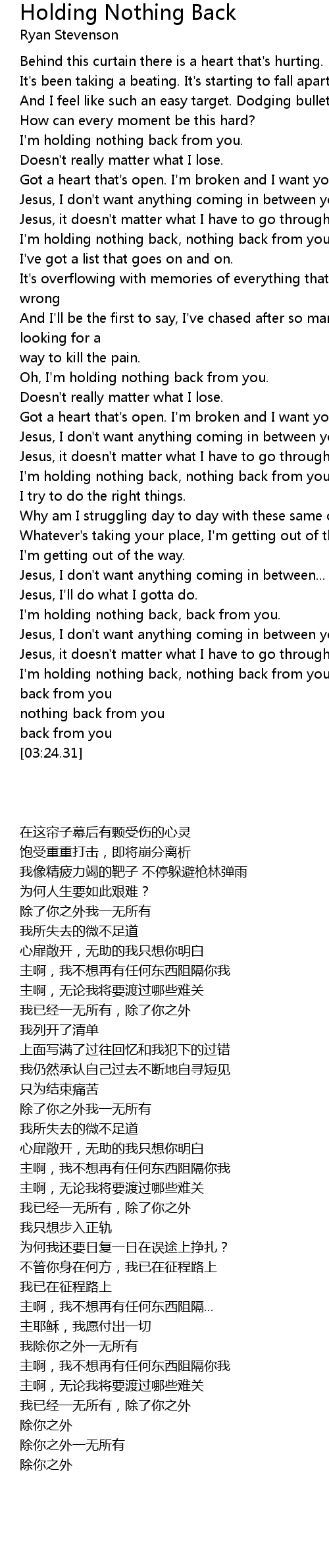 Holding Nothing Back 歌词