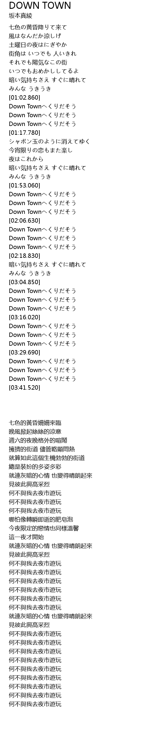 | [00:32.750] | 街角は いつでも 人いきれ |