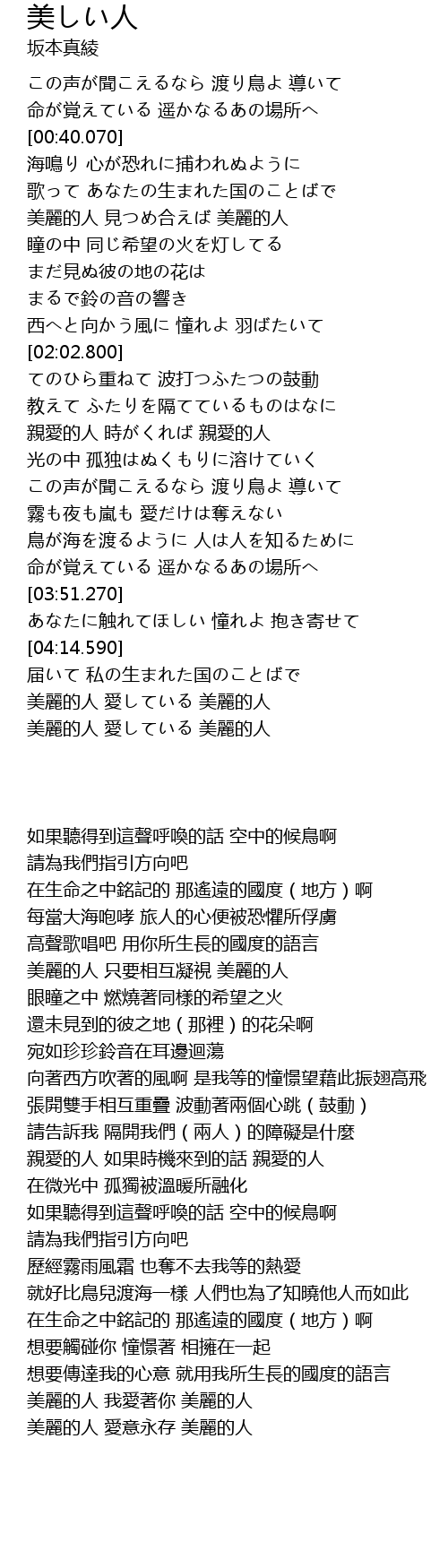 | [04:31.000] | 美麗的人 愛している 美麗的人 |