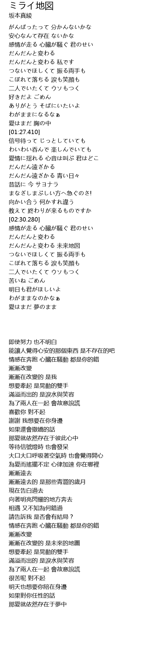 | [03:05.020] | だんだんと変わる 未来地図 |