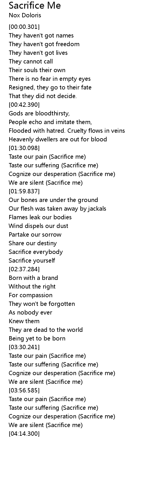 [04:00.110] Taste our suffering (Sacrifice me)