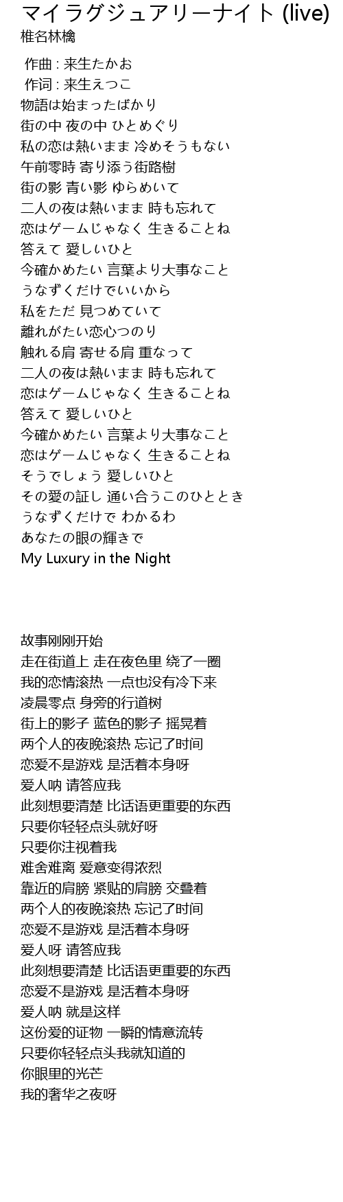 | [00:18.000] | 街の中 夜の中 ひとめぐり |