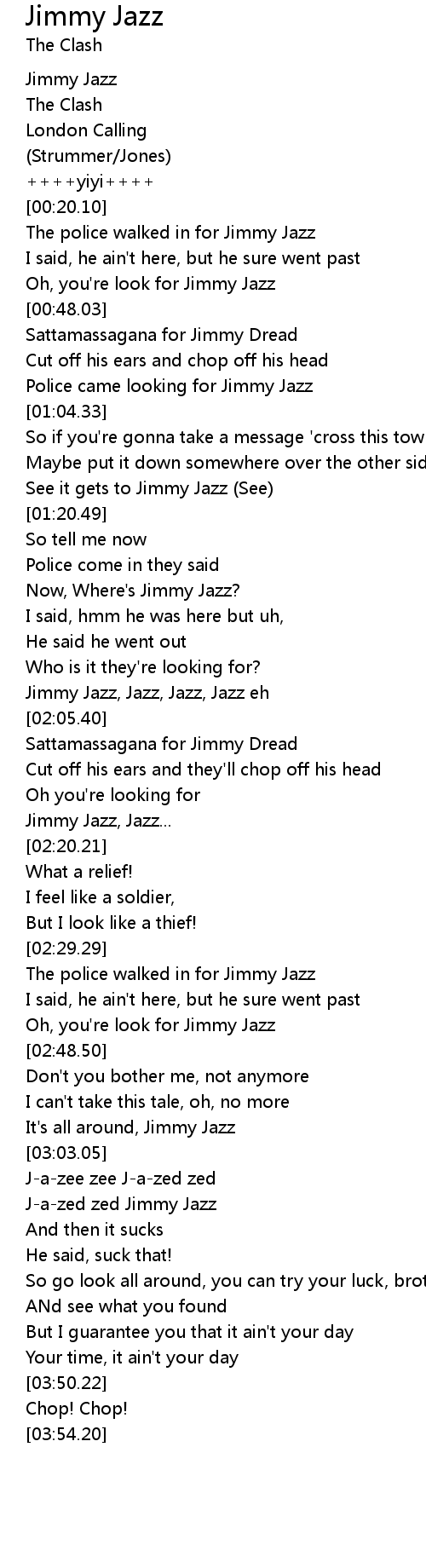 [02:35.47] The police walked in for Jimmy Jazz