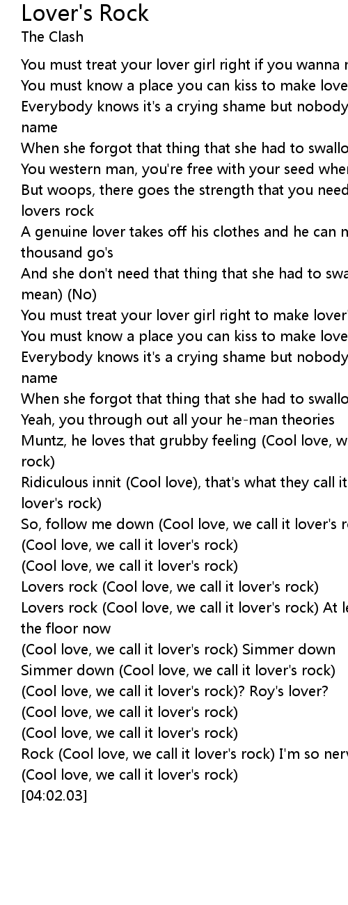 You must treat your lover girl right if you wanna make lover's rock |