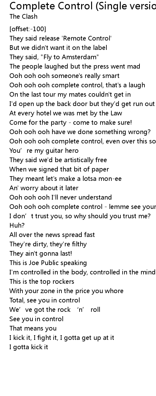 | [00:29.11] | Ooh ooh ooh complete control, that' s a laugh |