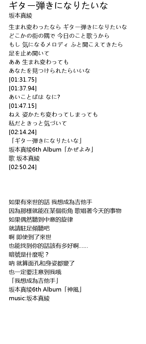 | [00:12.87] | 如果有來世的話 我想成為吉他手 |