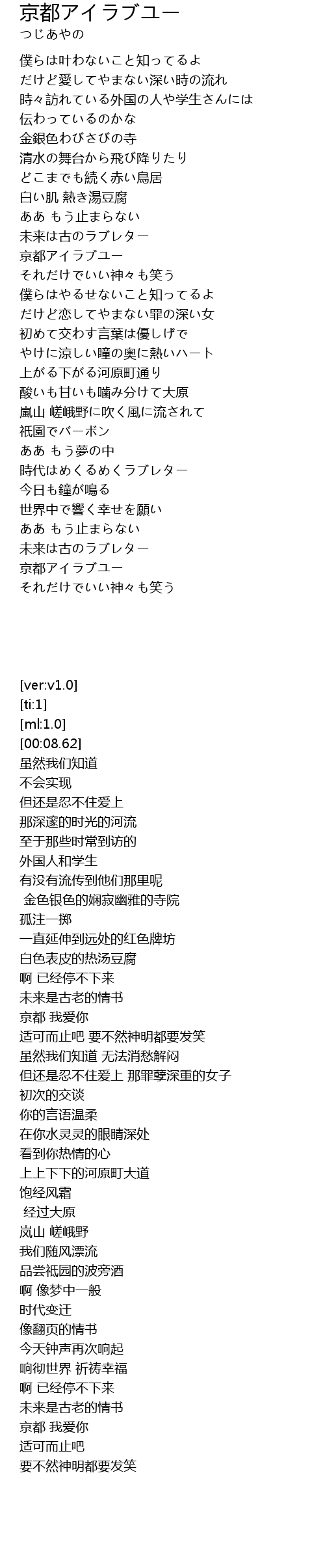 | [01:03.07] | 京都 我爱你 |