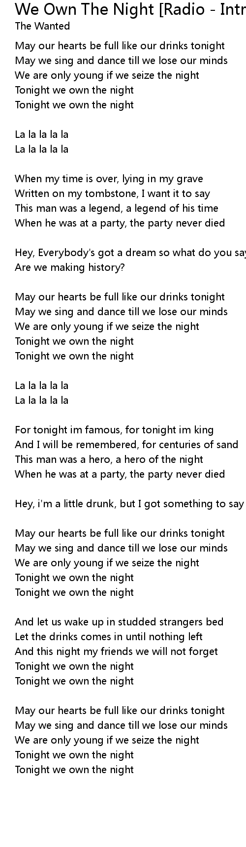 Tonight we own the night |