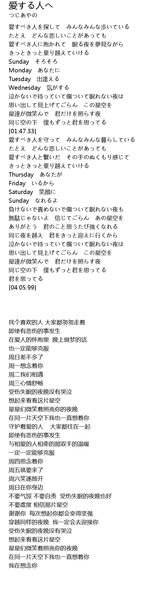 | [00:16.00] | 愛すべき人を探して みんなみんな歩いている |