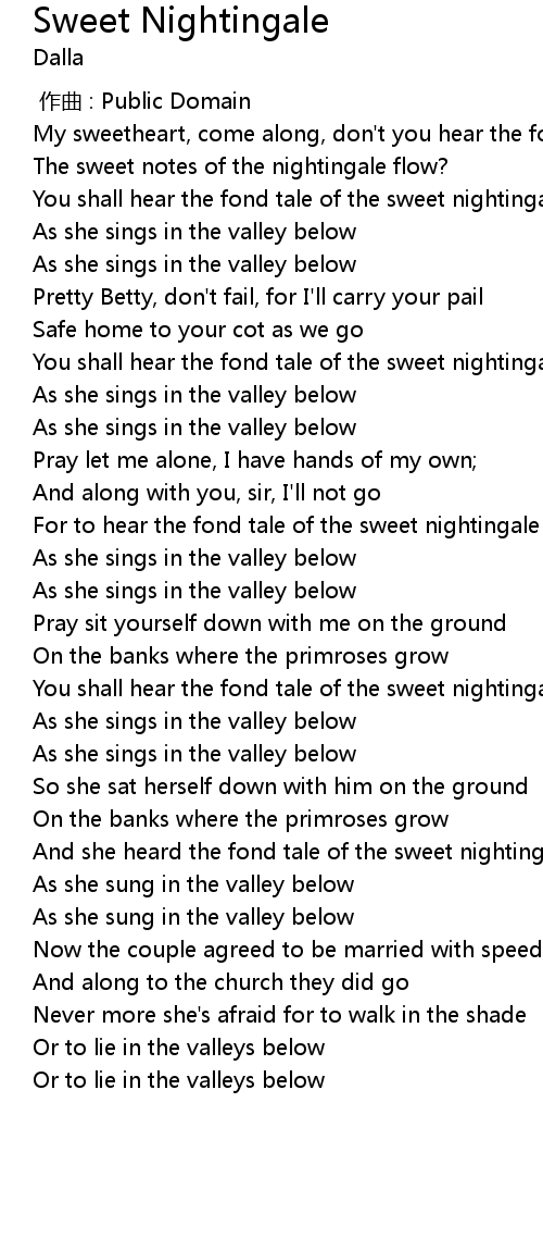 | [00:09.91] | You shall hear the fond tale of the sweet nightingale |