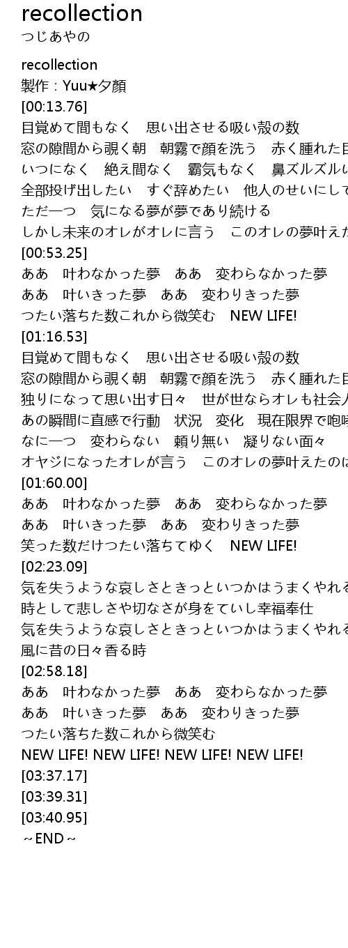 | [03:20.83] | NEW LIFE! NEW LIFE! NEW LIFE! NEW LIFE! |