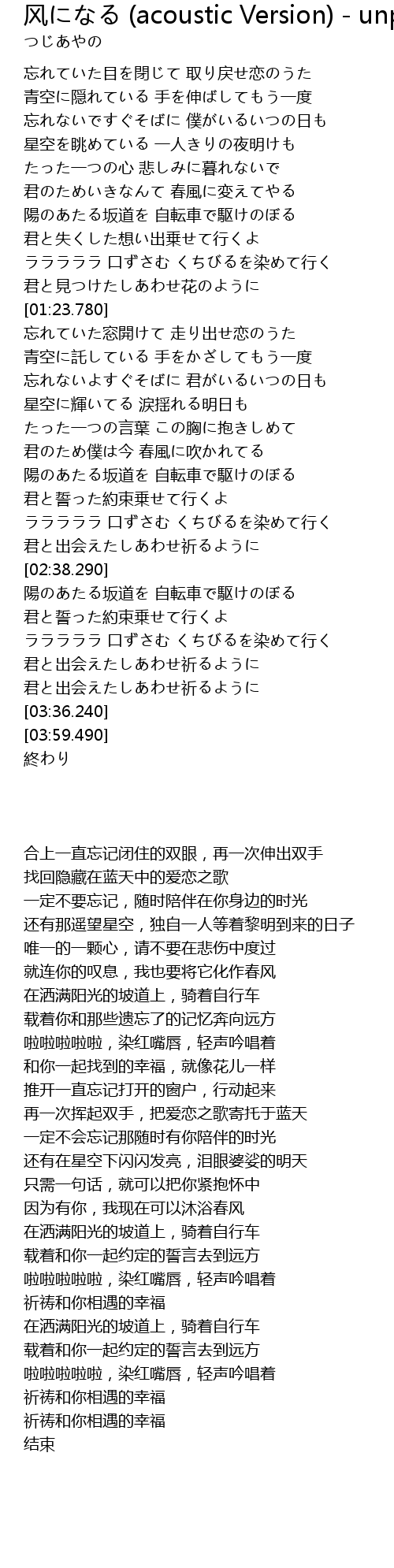 | 歌曲 | 风になる (acoustic Version) - unplug |
