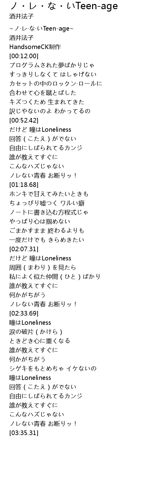 ~ノ·レ·な·いTeen-age~ |